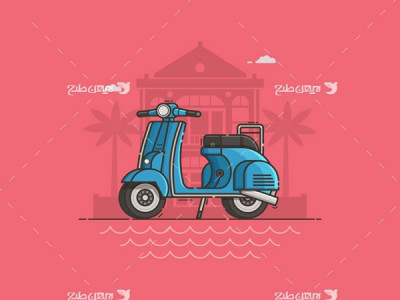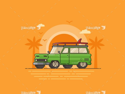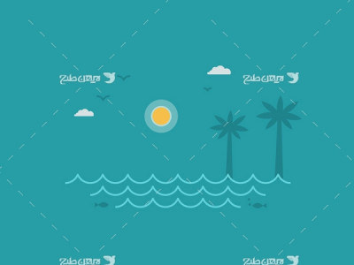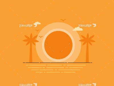 وکتور گرافیکی نخل،دریا،خورشیدو قایق