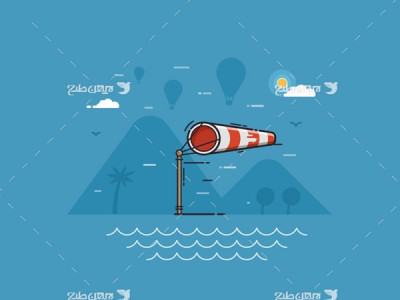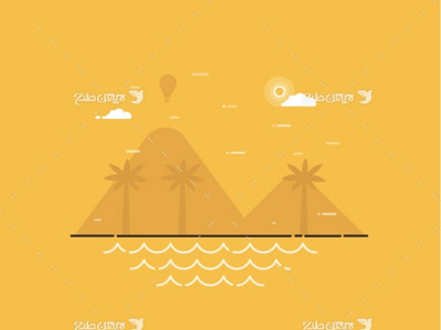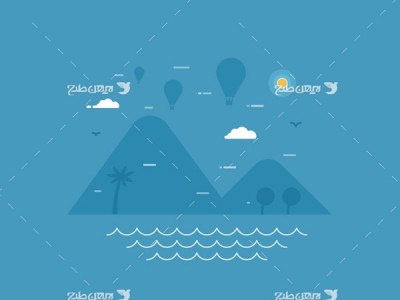 وکتور گرافیکی دریا ، کوه ، نخل ، بالون