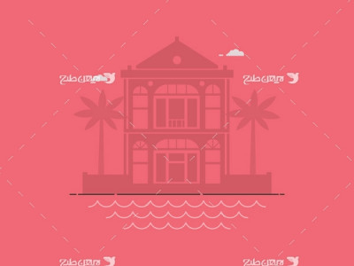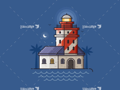 وکتور گرافیکی دریا، فانوس، خانه و نخل