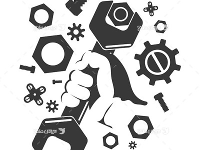 طرح وکتور صنعتی کار و دست و آچار و پیچ