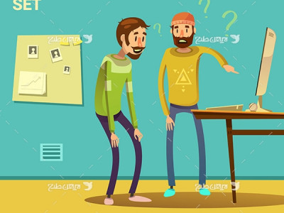 طرح وکتور گرافیکی با موضوع کار با کامپیوتر