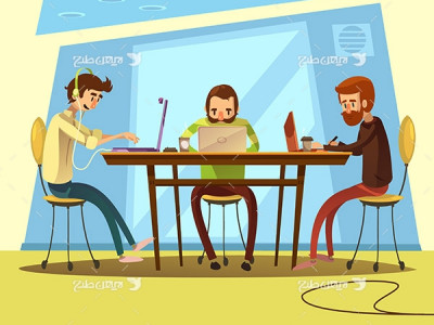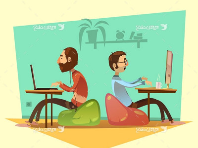 طرح وکتور گرافیکی با موضوع کار با کامپیوتر