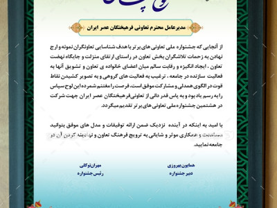 تقدیرنامه شرکت کنندگان در جشنواره تعاونی...