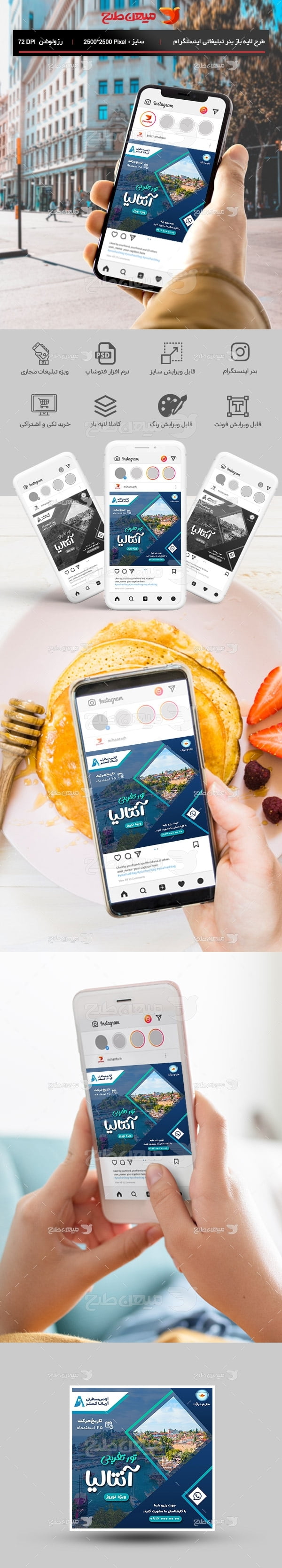 - طرح لایه باز قالب اینستاگرام تور مسافرتی
