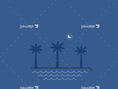 وکتور گرافیکی دریا ، نخل و ماه رایگان