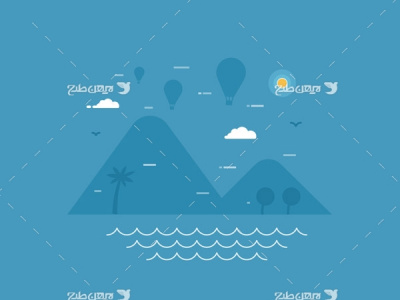 وکتور گرافیکی دریا ، کوه ، نخل ،... رایگان