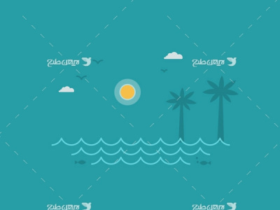 وکتور گرافیکی نخل،دریا،خورشیدو قایق رایگان