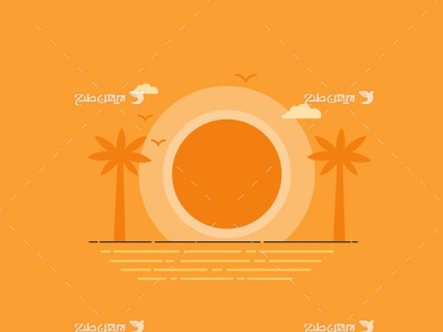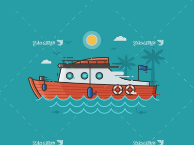 وکتور گرافیکی نخل،دریا،خورشیدو قایق رایگان