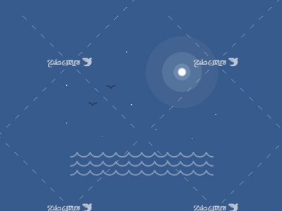 وکتور گرافیکی دریا،خورشید و پرنده رایگان