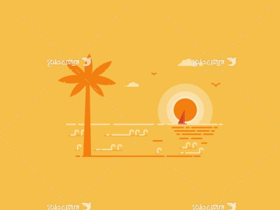 وکتور گرافیکی نخل،دریا،خورشیدو قایق رایگان