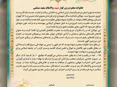 لوح تقدیر از خانواده شهدای مدافع حرم59000 تومان