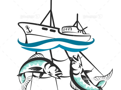 لوگو کشتی صیادی و ماهیگیری و تور... رایگان