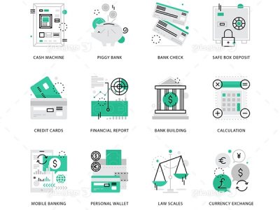 طرح وکتور آیکن با موضوع مالی و بانکی رایگان