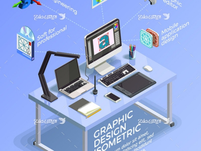 طرح وکتور سه بعدی رایانه و کامپیوتر رایگان