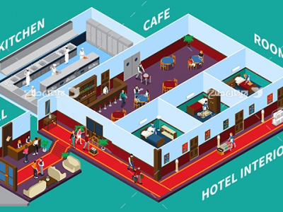 طرح وکتور سه بعدی هتل و آشپزخانه و... رایگان