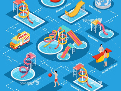 طرح وکتور سه بعدی شهر بازی های آبی و... رایگان