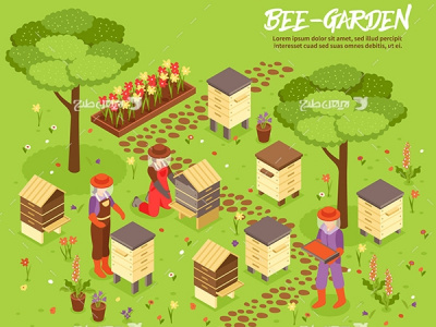 طرح وکتور سه بعدی باغ و باغدار رایگان