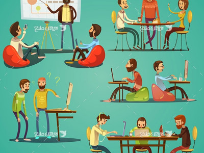 طرح وکتور گرافیکی با موضوع کار با کامپیوتر