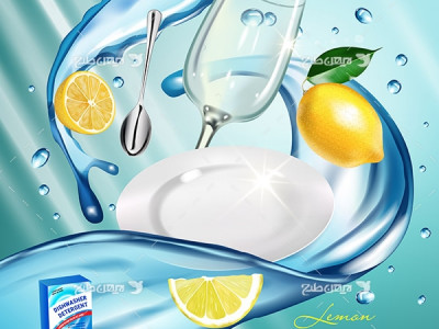 طرح وکتور تبلیغ مایع ظرفشویی با عصاره لیمو
