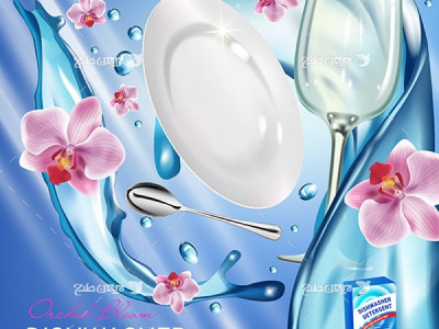 طرح وکتور تبلیغ مایع ظرفشویی با عصاره گل