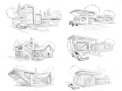 طرح گرافیکی وکتور - اسکیج نقاشی خانه و...